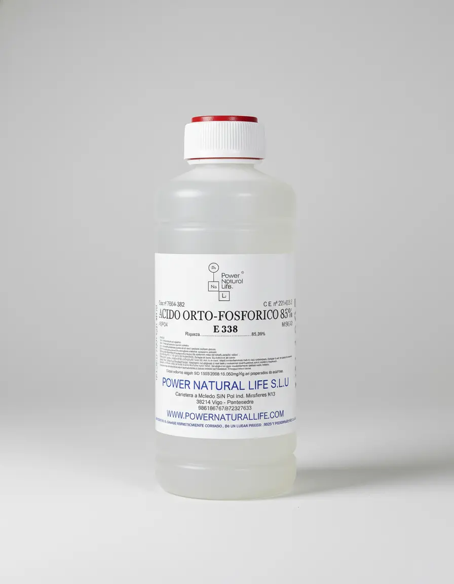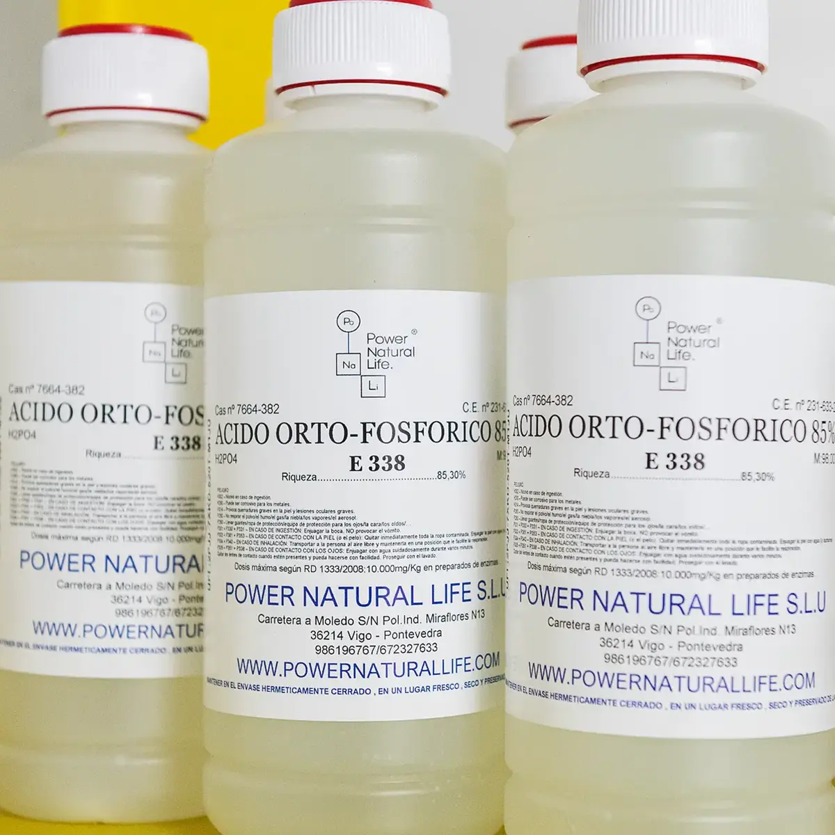 Su composición es tres átomos de hidrógeno, un átomo de fósforo y cuatro átomos de oxígeno. Esta composición química le confiere una acidez moderada y una amplia gama de usos en aplicaciones industriales. Recibe el código E-338 como aditivo alimentario.