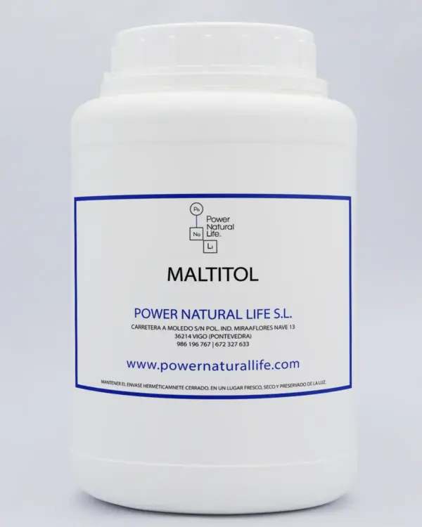 El Maltitol E965 es un edulcorante derivado del almidón, generalmente del maíz o del trigo, que pertenece al grupo de los polioles. Se presenta en forma de jarabe (jarabe de maltitol) o cristales blancos. igual que el xilitol y sorbitol.