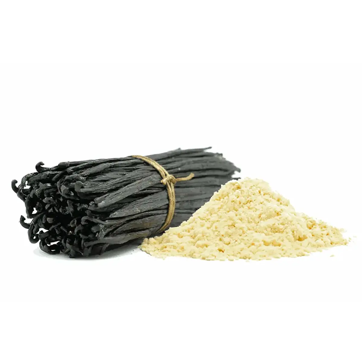 El extracto de vainilla en polvo es una forma deshidratada y concentrada del extracto de vainilla, que permite una fácil integración de su sabor sin añadir humedad.