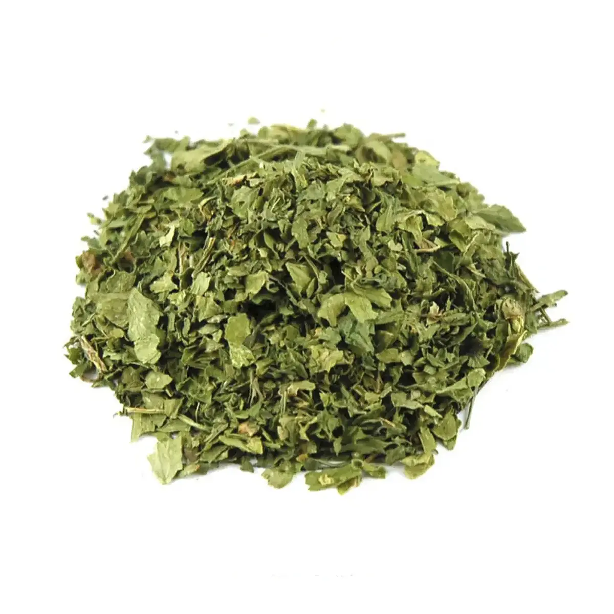Las hojas de apio deshidratadas en escamas se obtienen mediante la deshidratación de las hojas frescas del apio, seguidas de un proceso de trituración que las convierte en polvo fino.