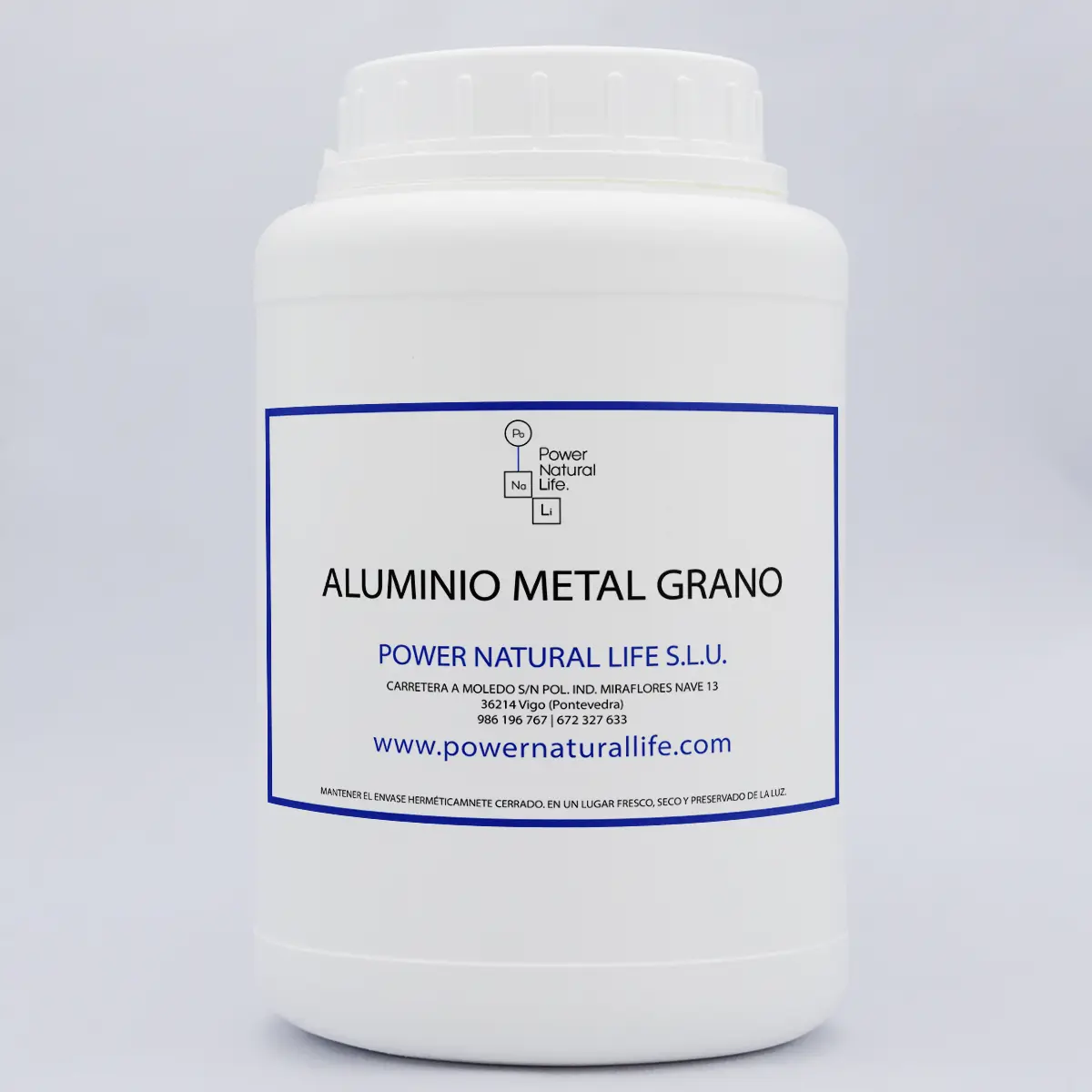 El aluminio metal grano es una forma de aluminio que se presenta en forma de pequeñas partículas o granos.